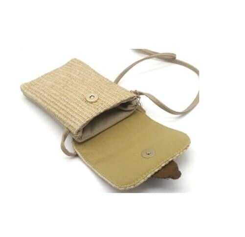 Deze stijlvolle crossbody tas combineert natuurlijke eenvoud met een vleugje artistieke flair. Gemaakt van gevlochten materiaal in een neutrale zandkleur en afgewerkt met een opvallende handgemaakte kralenapplicatie op de flap, straalt deze tas rust én karakter uit.