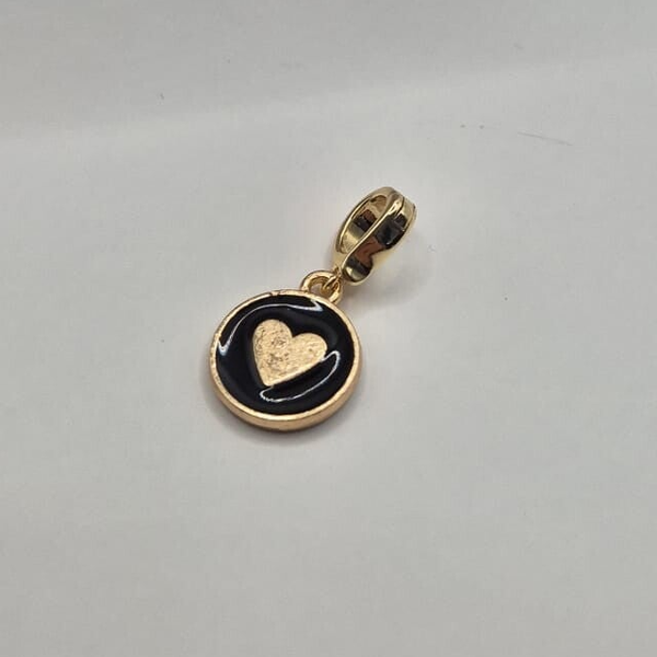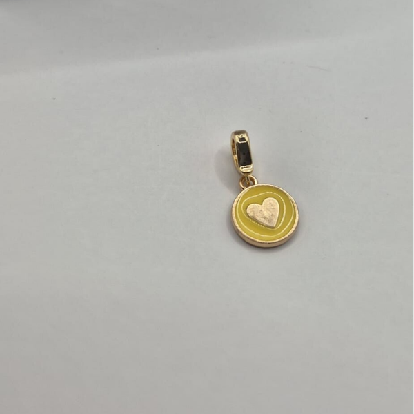 Schattige ronde bedel met een hartje in reliëf, afgewerkt met glanzend emaille in diverse kleuren. Perfect om liefde en kleur toe te voegen aan je armband of ketting.