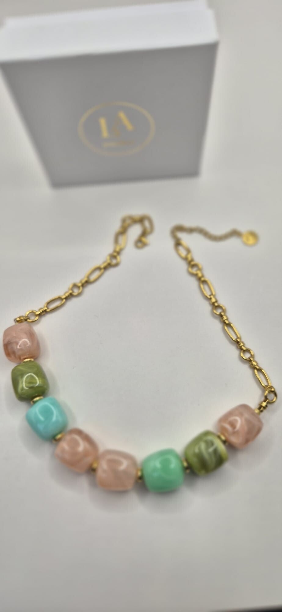 Prachtige harsh kralen ketting. Leuke zomerse kleurtjes.