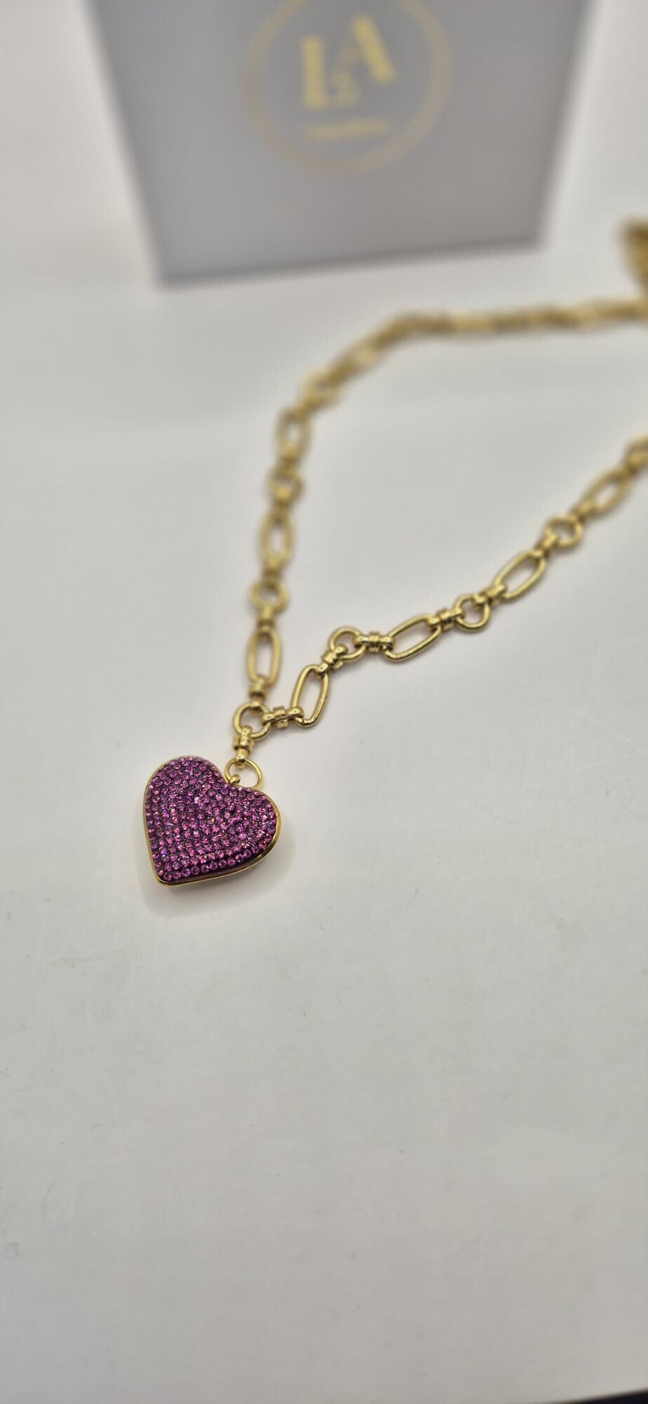 Toffe stainless steel ketting met een glitter hartje. Verkrijgbaar in zowel fuchsia als witte glitters.